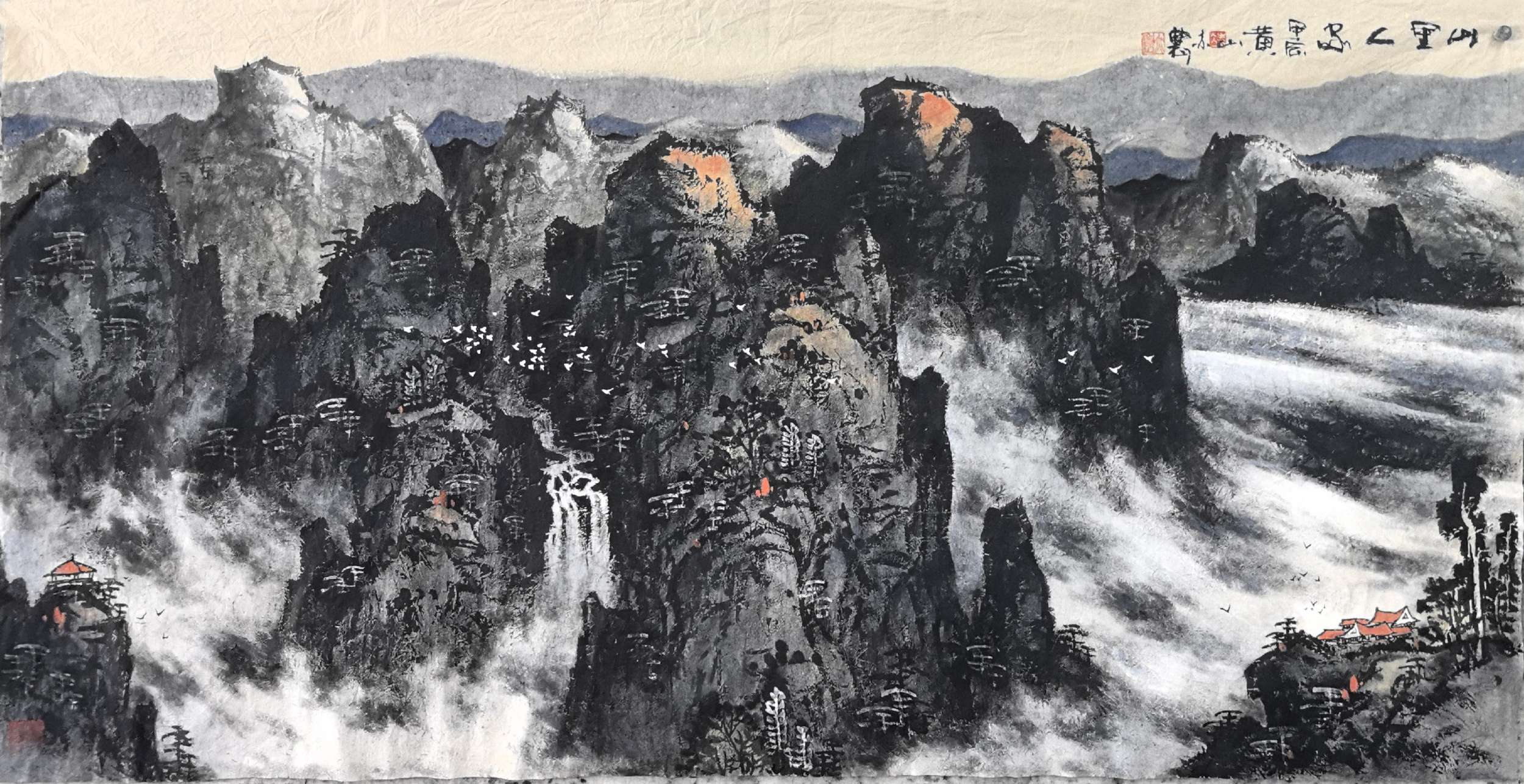 他的山水画厚重,空间感极强。他的左笔书法融汇了,传统艺术精髓。又结合了现代审美观念,大篆作品金石味极强,形成了自己独特的艺术风格。他的山水作品气势磅礴, 书法字迹洒脱俊逸。具有很强的感染力。他的艺术成就得到业内人士的高度认可。被誉为黄山奇才。