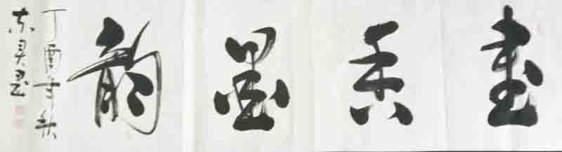 近期又剑走偏锋、独树一枝,一笔挥就奇特墨宝,内涵三首奇妙诗文(其中一首是回文诗)。此作虽不敢狂称独步千古,至少在中国文史上下五千年尚属首例,未见雷同。有一喜爱收藏的京城富豪,愿出百万豪金收之据为己有(答应他不能再出现第二幅同样的墨宝作品)。后经本人细虑,终未能出手成交。