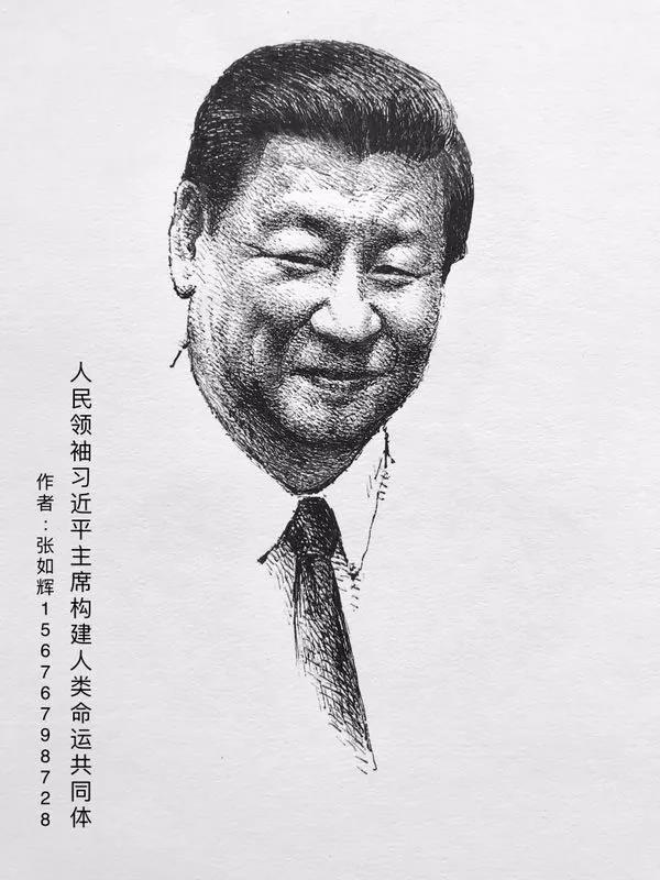钢笔素描是诚实的艺术,更是线条流动笔画翻腾的艺术。翻开张如辉的元首肖像画,第一眼看到的就是人物的精气神,线条极具个性。那是一种很少见到的线性特征。张如辉把各种对立的线性元素集合到一起,营造空间,聚拢气息,佐以书法笔道,用草书笔法构形造意,再辅之国外素描充满哲学内含的线,寥寥数笔,人物的精气神跃然纸上。此时,他笔下的人物,无论是从头发,光影,神态,还是人物五官的结构和走向,都以全新的视角赋予了新的生命,形成了张氏钢笔素描特征。