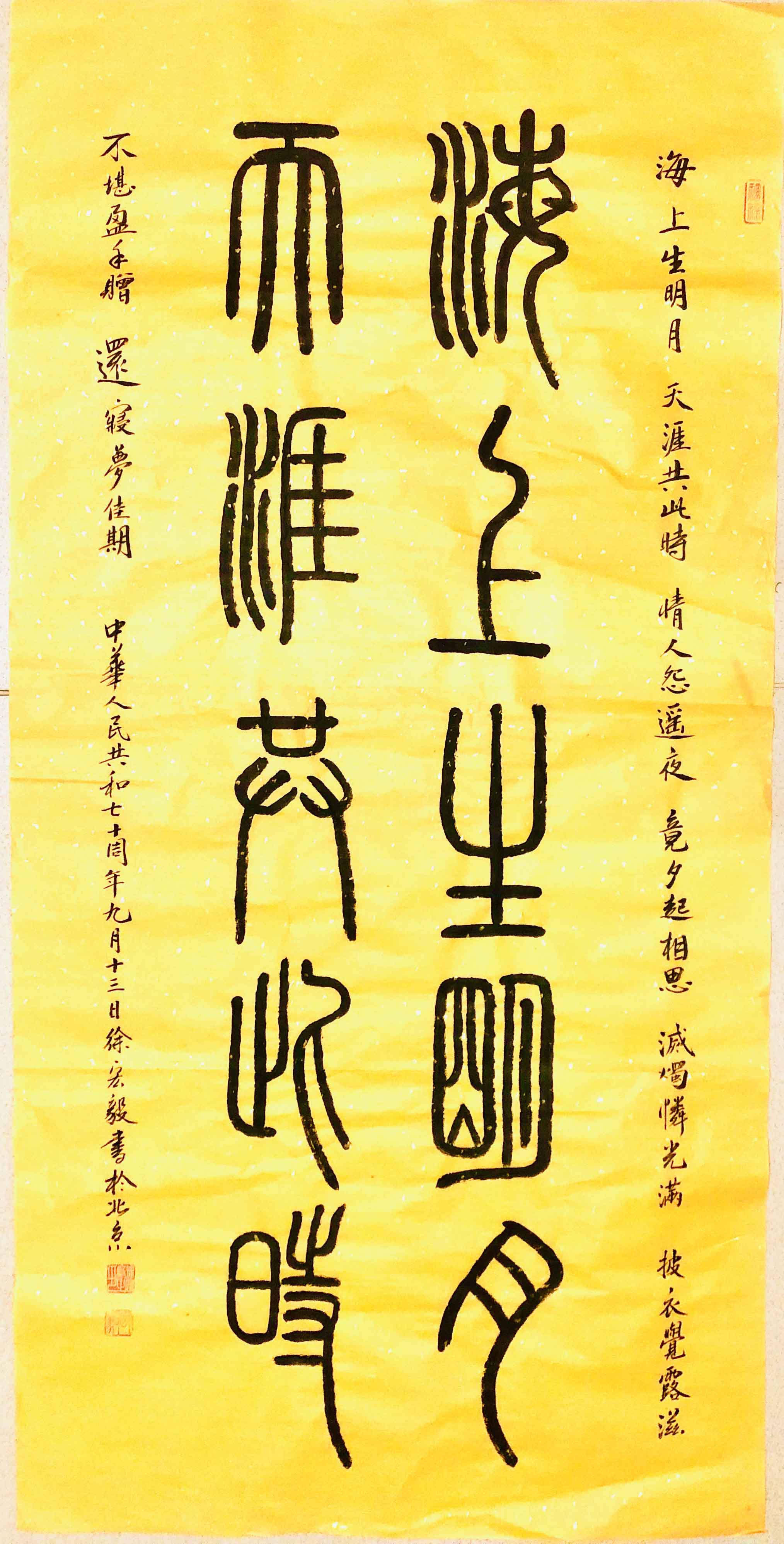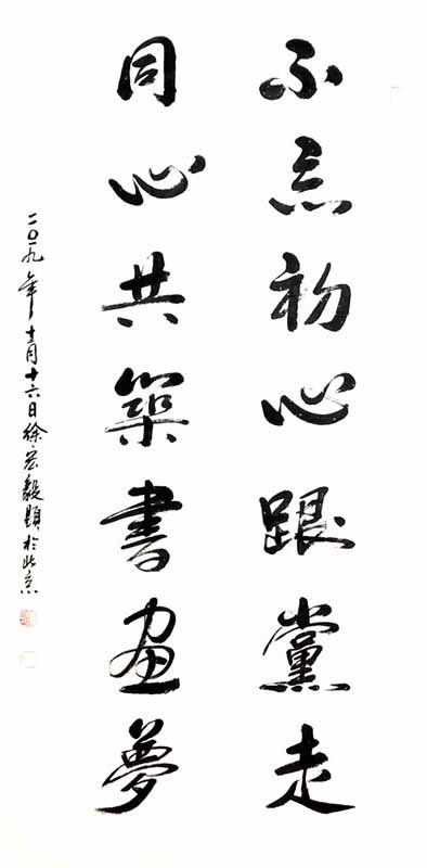徐宏毅、法号恒华,国家一级美术师,中央国家机关美术家协会、书法家协会理事,中国书法家协会会员,中国美术家协会会员,国资委课题研究中心调研员,国家民委书画专业委员会客坐教授。 1963年2月9日生于历史名城西安,从小学习书法和治印。书从唐楷入手,隶书习曹全碑,草书习张芝、王羲之等笔法。思想追求完美,部分作品被中华人民共和国外交部和钓鱼台国宾馆收藏。作品巜唯德动天》被国家博物馆收藏,《无我奉献》被国家发改委收藏,《天道》被国家体育总局水立方永久收藏,《厚德载物》、《自强不息》被中国煤炭博物馆收藏。2012年荣获全国“德艺双馨”称号,2013年荣获中华国粹金奖,2014年荣获全国书画创意金奖,2017年7月荣获纪念香港回归20周国际书画大赛金奖和全国书画百杰人物奖;在2018年度中国时代风彩征评活动中被授于"金奖书画名家"。