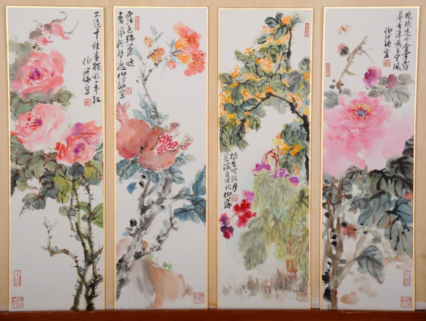 白伯骅先生近年来潜心创作的花鸟画在构图上突出主体,方寸之间善于剪裁,时画折技,讲求布局中的虚实对比与顾盼呼应,不论是《梅兰竹菊》、《福禄寿喜》成套作品,还是“五谷丰登”、“大吉大利”、“连年有余”、“百年好合”等作品均以老宣入笔、构图丰盈、没骨淋漓的表现形式抒发着作者淡泊超然的人文情怀。