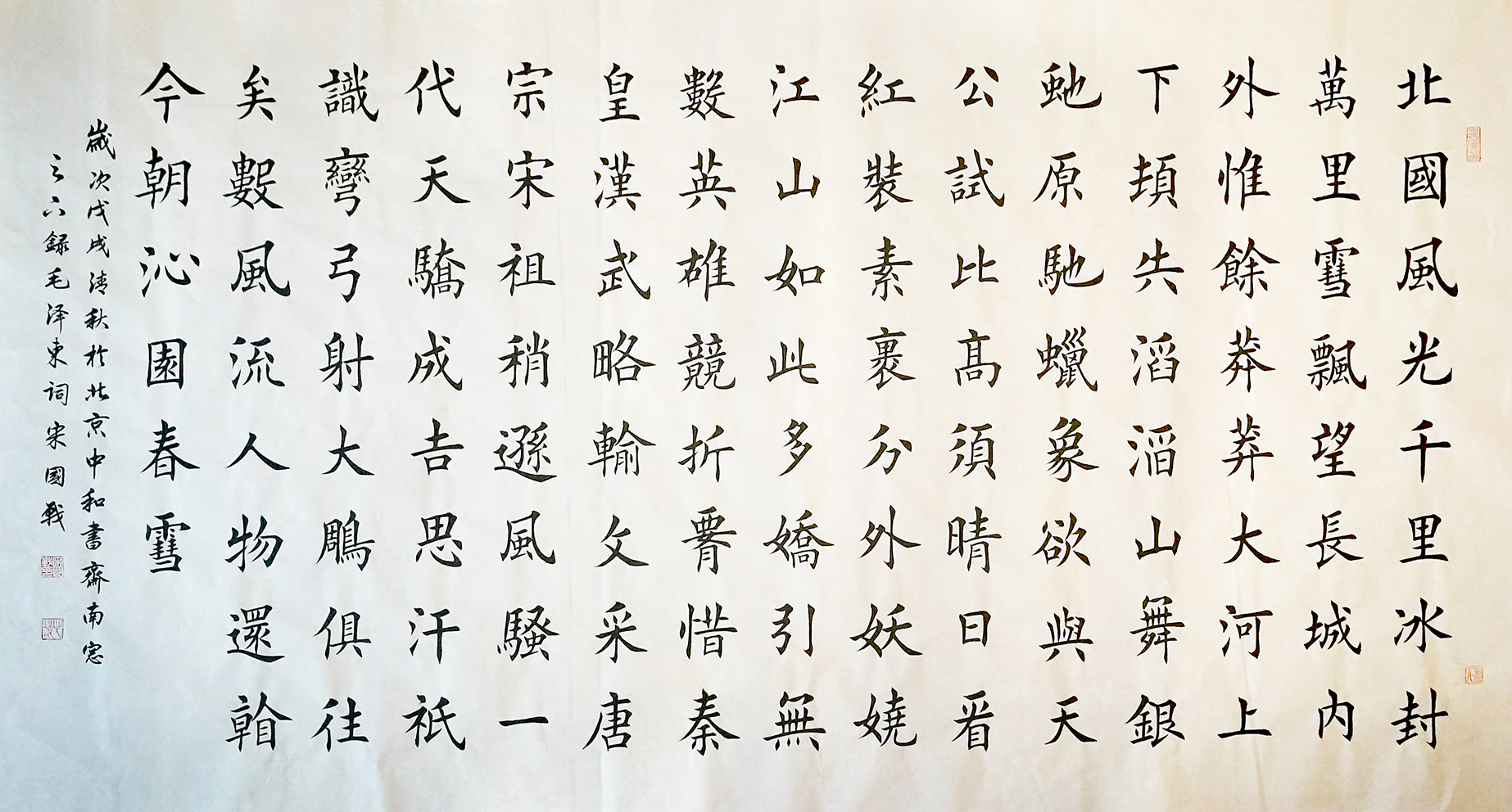 宋国战,字中和,1970年生于北京,师从于田英章先生,中国人民大学书法研究生,文化部、人力资源和社会保障部书法家评审委员会专家委员,高级书法家。宋国战自幼酷爱书法,从小学时就对书法产生了浓厚的兴趣,几十年来临池不辍,主要以欧楷为主,行书学习二王和赵孟頫,始终坚持着传统书法道路,形成了实力派书法风格。