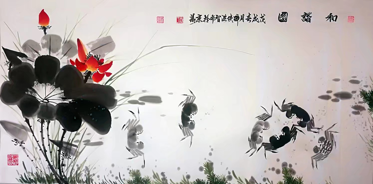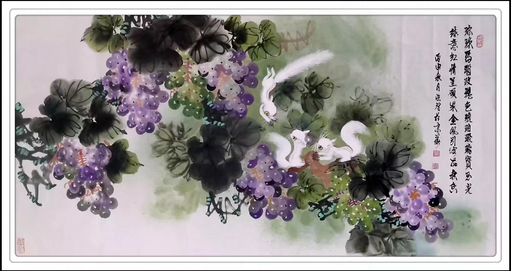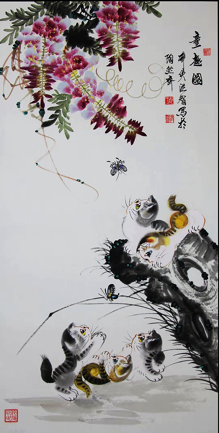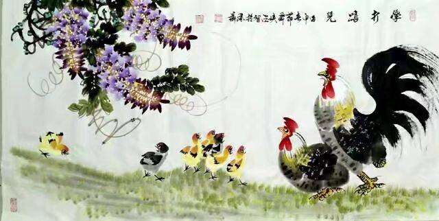 在书画创作中,牢记师祖齐白石“学我者生,似我者死”,师爷许麟庐先生“寻门而入,破门而出”及师父张世鹏先生“报佛脚易,进佛门难”的教诲,努力“参禅悟道,探索创新”,追求“诗中有画,画中有诗”的艺术境界,在继承传统书画技艺的基础上,逐步形成了以鱼、虾、蟹、猫、鸡、松鼠葡萄等为主体的田园系列。作品主题鲜明,寓意美好,笔下的小生灵活泼可爱,生动传神,富有浓郁的田园情味。