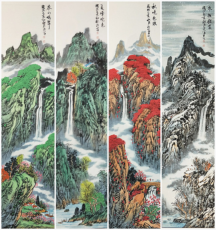 四条屏春夏秋冬被孙中山国父纪念馆永久收藏
