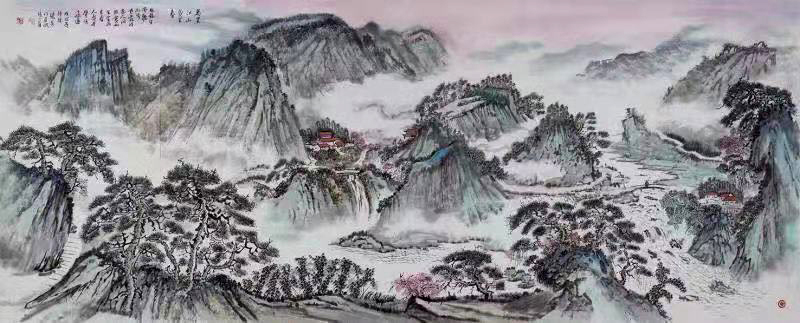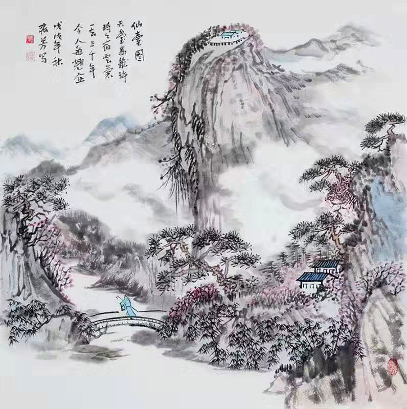 Zhang Fang: calligrapher and painter, born in Weifang, Shandong, Pen name Lingyun, national level-I artist, graduated from Fine Arts Department of Shandong University, received further education in Xian Academy of Fine Arts, student of Mr. Likan, one famous modern landscape painter, in 2019, won the title of leading figure of 40th anniversary of reform & opening up of the country, currently studying in Beijing People’s Arts University, her elaborate-style painting was guided by Mr. Zong Wanhua, the painting picture is true to life with distinguished air of elegance and coquetry. Mr. Zhang Shoushi, modern calligraphy master is her tutor. Zhangfang now boasts an outstanding representative of Changan Painting school due to the essence of pen ink and gorgeous elegance in her landscape works.