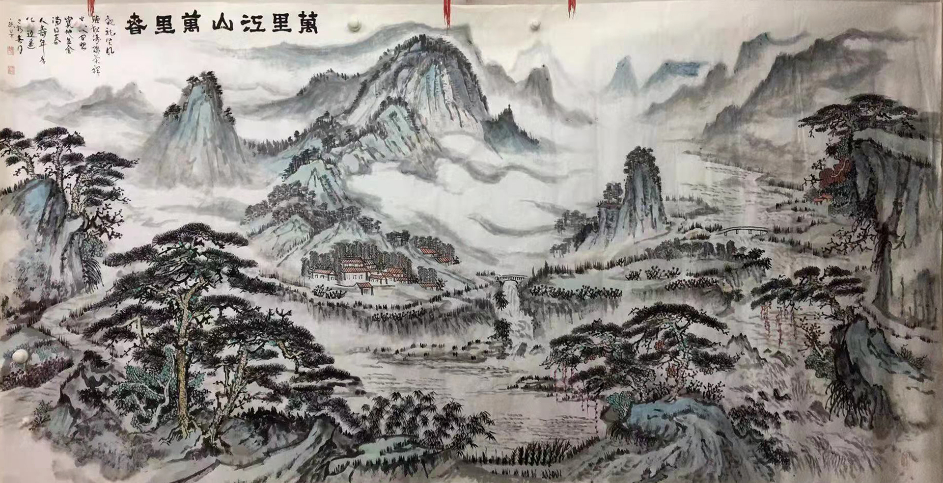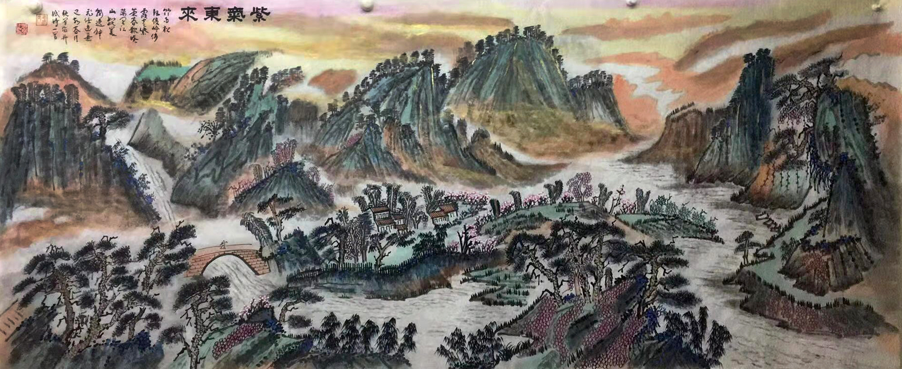 It is highly significant for us to have a deeply philosophy first, a good works requires quite a lot of knowledge from layout to completion, the entire picture requires not only perfect structure but also Fengshui concept, treasure bowl must be displayed in the picture to symbolize the profits pouring in from all sides, etc., the above are all something coming from Chinese tradition concepts, for some big works, it will be meaningless without Fengshui effect. Brushwork plays a key role in making sure to create an aesthetic structure, the quality of brushwork lines is crucial, too solid lines will look too stiff, it is a must to keep every line to be bone lines and calligraphic line, dry pen and light ink are the only way to demonstrate the essentials of basic training, each line in Chinese landscape paintings can be taken apart as the strict strokes from calligraphy, calligraphy therefore is of great importance in painting works, the dry pen and light ink make the picture clean and elegant, audiences will feel as if breathing in fresh air, while the large splash-ink never does so.