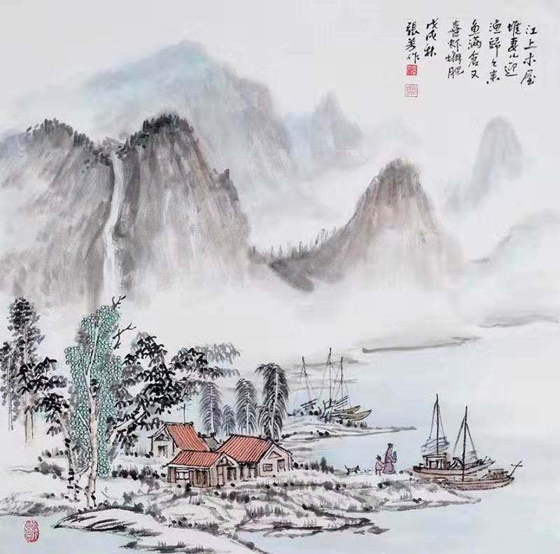 We should be aware that Chinese ink is divided into 5 colors, the painting masters in last century knew how to perfectly grasp the ink-application techniques in their masterpieces. The wet painting makes the picture appear like floating cloud and moving stream with all shapes of deportment. One high-level landscape painting shows a kind of spirit with a profound artistic conception, affording for thoughts.