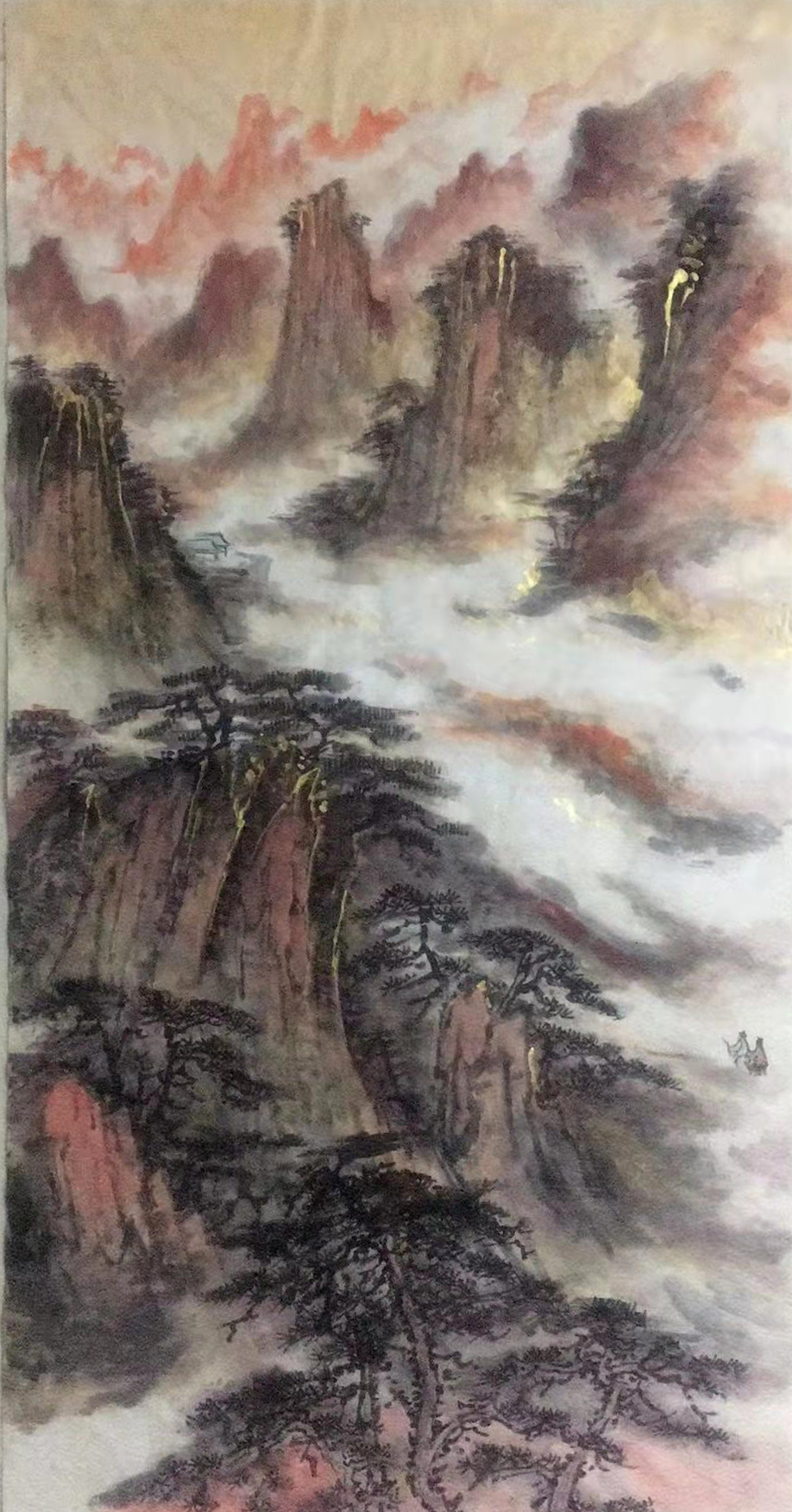 I never paint for some social engagements, never give my works easily and readily, all my works are the leakages of my heart blood, the collision of emotion and passion. I wrote poems for all my works by myself for I believe that trees are the root of mountains and poems are the soul of paintings. To study poems and practise calligraphy will enhance my painting achievements. Painting is a kind of scholarship engagement, must deeply understand the significance of the culture beyond painting. Painting builds body more than heavy makeup, poem books bring people magnificent temperament, by that means, painters are able to paint all kinds of paints to suit both refined and popular tastes.