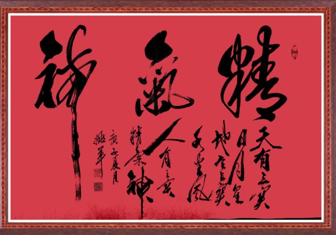 其的书法作品浑厚苍劲,气势磅礴,笔致劲健,结体潇洒,飘逸灵动,意度天成,富有朝气。