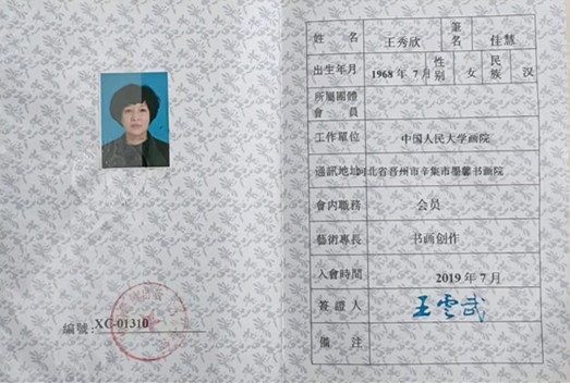王秀欣,女,汉族,1968年出生,河北人,字佳慧,法 号 常秀。她经过数十年的不断学习实践和市场打拼,现为国 家一级美术师,国 礼 特 供书画家,中华国礼网国礼艺术家,河北省美协 会 员,河北省书 协 会 员,中国文化促进会榜书艺术研究会会员,墨馨 斋书 画 院 院 长,中 国山水画协 会 会 员,名 人 名 企 交 流 协 会 艺术 顾 问,中企艺联书画院副院长等领导职务。