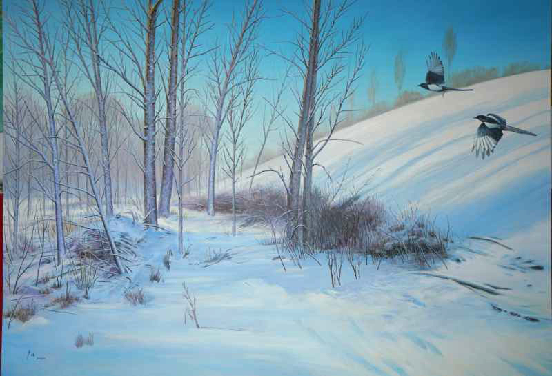 1995年油画《雪后京城》在中国历史革命博物馆展出、获银奖,被北京市文联收藏并在中央电视台播映。