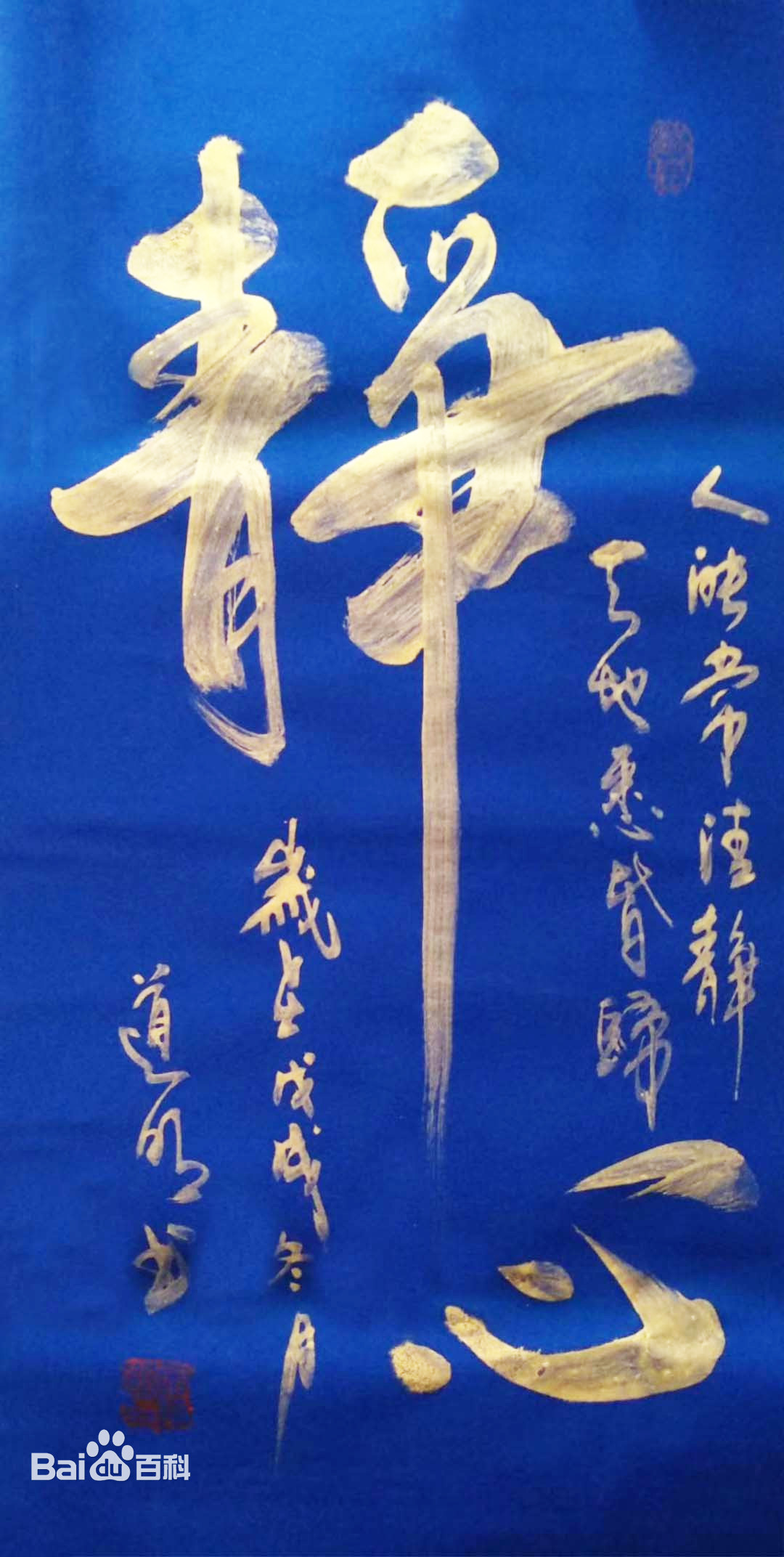 张道明先生对书法有一定的造诣和研究,最初从临习颜、柳入手,兼习二王,遍观百家所长并汲取其精华,经多个书法老师指点,逐渐形成个人独特风格。大楷、行书、草书、篆书皆能,尤其擅长行草体和榜书创作。广泛被政界、商界、文化界、华侨台胞、外国友人礼赠收藏,作品极具观赏性、艺术性。书法行草体有道家的飘逸自然,也有佛家的灵动沉静,整体更显出行云流水般的太极韵味 ,书法佳作渐成书法大家之独特格调.