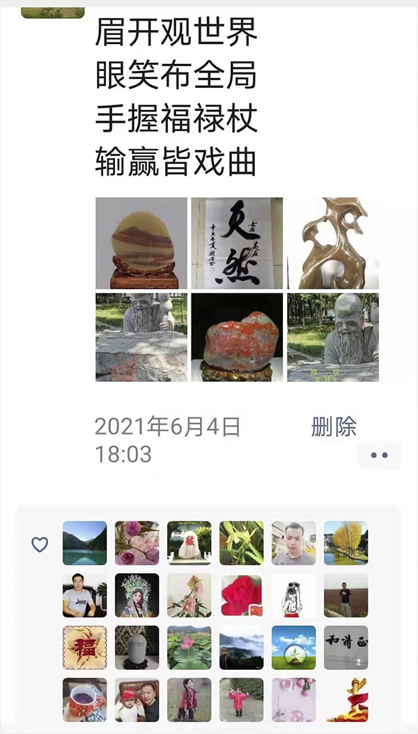注重奇石、诗词、摄影和古玩收藏等系统研究,形成了自己独特的艺术风格。