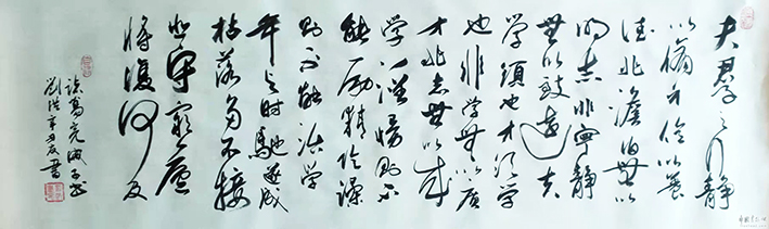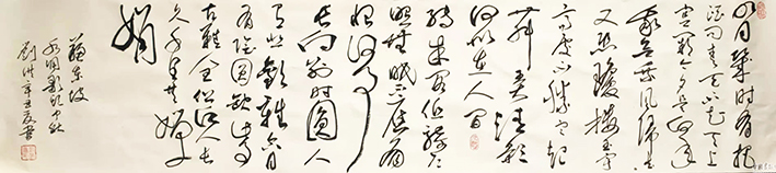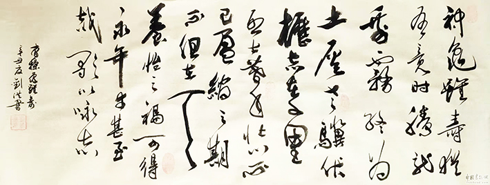 刘洪,男,1958年出生,从事医、教、研工作四十年,医科大学教授。自幼喜爱书法,崇尚书医同道的文化思想,崇尚古今融合的道法理念,喜欢赵孟頫的华丽,欣赏文徵明的惊艳,感叹怀素的狂放,敬佩王羲之的绝伦。从临帖十载,到研笔习作春秋往复,从未停止学习探索。沾前人之雨露,沐今人之阳光,采经典之荟萃,成自家之微长。从不以虚名虚利为所图,唯享受书道之高境。也曾多次参加国内书法竞赛,并无显赫之作,也不乏创作雅品。