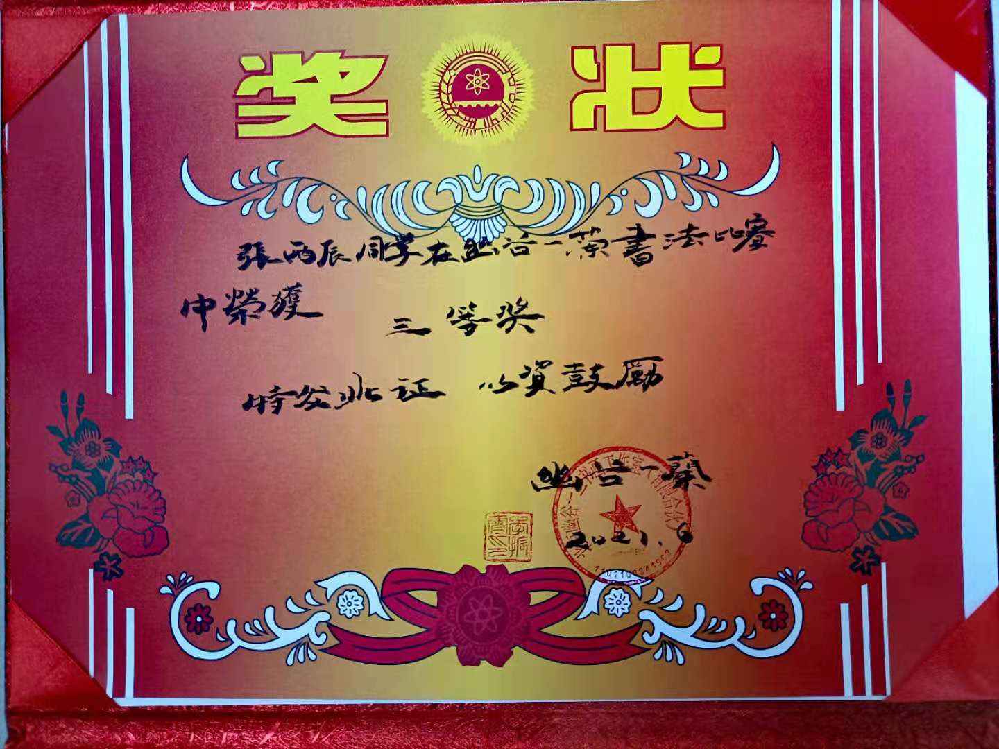 2021年6月在幽谷一兰首届书法比赛即建党百年书法比赛中荣获三等奖。