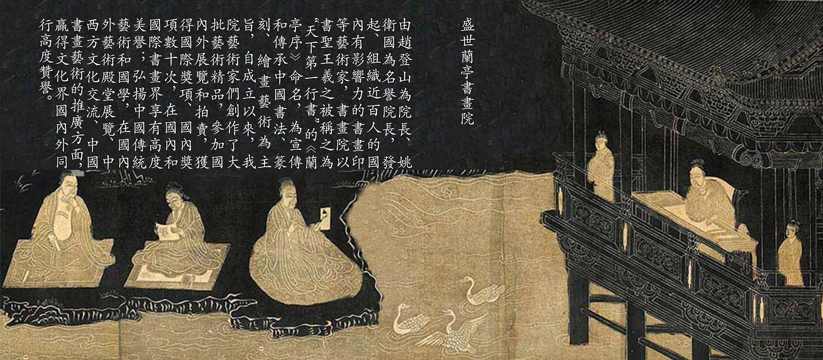 盛世兰亭书画院,著名书法家赵登山担任院长、著名水墨艺术大师姚卫国为名誉院长,联合发起组织的国内有较大影响力的书画印书画院,以书圣王羲之被称之为“天下第一行书”的《兰亭序》命名,以传承中国书法艺术、绘画艺术、篆刻艺术为主旨,自成立以来,我院艺术家们创作了大批艺术精品,参加国内外展览和拍卖,获得国际奖项、国内奖项数十次,在国内和国际书画界享有高度美誉;弘扬中国传统艺术和国学,在国内外艺术殿堂展览、中西方文化交流中,赢得文化界国内外同行高度赞誉。