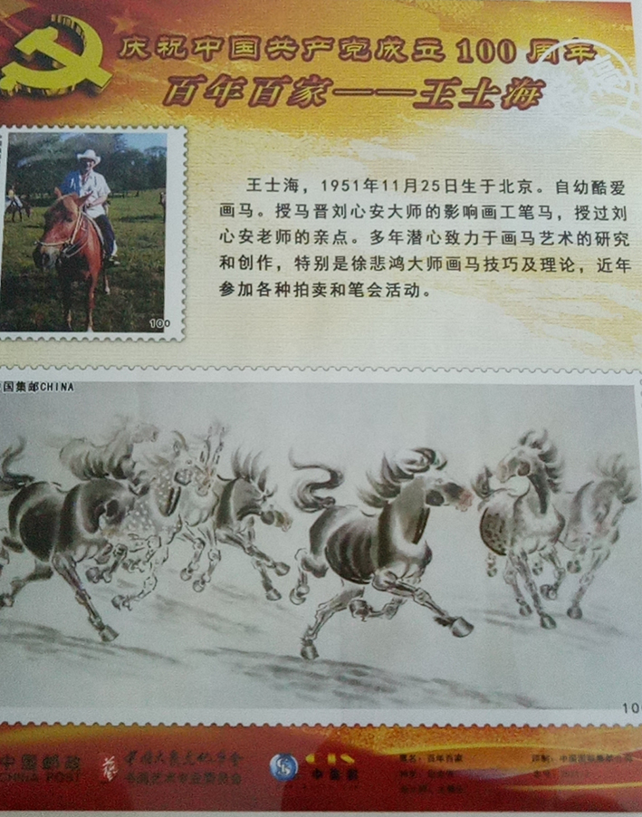 几十年已有数千张作品被民间收藏,市面发行的邮政邮票马图案也是本人提供的画稿,近年参加国内外拍卖活动,多幅作品被海外人士收藏,多次为企业家创作大幅八俊图。