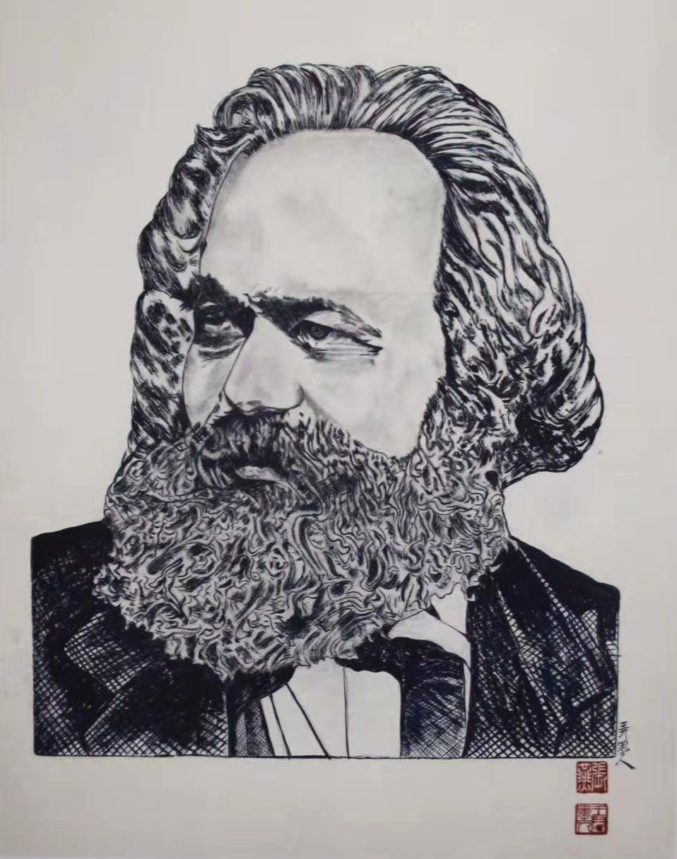 2019年05月04日 为北京正航文化集团成立十周年大会画的水墨画毛主席的肖像。
