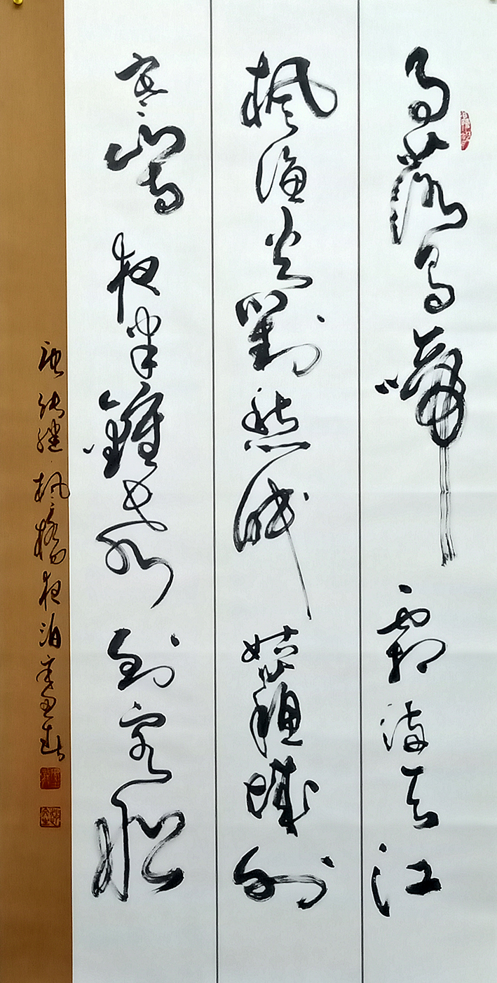 他的书法使转精微骨体洞达,创新而多写意精神,善于出入古人中又表现时代审美,又强烈个性注入写作中。精到处可谓字里金生,行间玉润;颖异处可谓新理异态,自具别裁。在他恢宏沉静的风格背后有一种睥睨古今的豪情,就像明朗清澈的江水蕴蓄着激情无尽的波澜。而这种开拓万古的心胸,随着年龄阅历的增长,沉潜于变中之承的努力,他似乎比同代的书法家更有学者气息,更多开掘传统而变古为今的自觉。