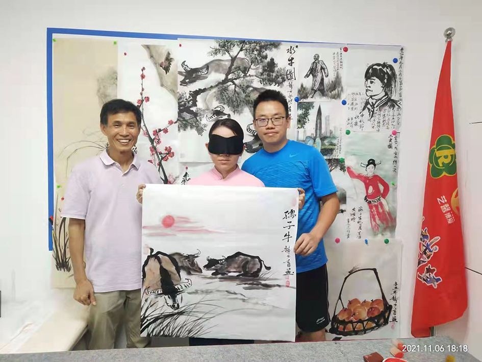 曾毓珺,女,原名曾晓冬,聋哑视障孤儿。大约出生于1991年12月,1996年跟随养父著名的书画家曾柏良先生学习盲画,绘画是视觉艺术,她用行动颠覆了三维的认知,创作出一大批优秀的盲画作品。5岁受邀到香港举办盲画画展,7岁受邀到瑞士参加世界儿童书画笔会并现场表演中国画之盲画,并被载入《广西通志》。她是《中国残疾人》杂志在2002年第 9期重点报道过的人物,2003年加入南宁市美术家协会和中国残疾人美术家联谊会。2008她为年北京奥运会和残奥会创作的2008厘米盲画《奥运群英图》,被奥委会收藏。她的盲画作品多次在德国、英国、日本、美国、香港展出。中央电视台、《澳门日报》、中国新闻社等十几家媒体报道她的事迹,在社会上及残疾人群体中享有较高的知名度。2011年获香港十大杰出残疾人士奖。著名的作家马克吐温说:19世纪诞生了两个了不起的人物,一个是拿破仑,一个就是既盲又聋哑的海伦凯勒,然而,拿破仑是用武力去征服人类,而海伦凯勒确是用心去征服人类,后者更加伟大。21世纪,在2021年7月1日中国共产党建党100周年之际,中国广西南宁的聋哑视障孤儿曾毓珺创作了盲画百牛图的扭转乾坤,献给伟大、光荣、正确的中国共产党。
