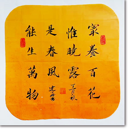 董建海:字:闲人,男67岁,北京房山区,长沟镇,东长沟村。学书40多年,现为中国榜书研究会会员,北京老年书画研究会会员,房山区书协会员,长沟西厢书画院副院长。九三年参加北京市个协书画展,获三等奖,经常参加本地区各种书画展出活动。研习行书,学二王,草书学十七帖和孙过庭书谱,隶书学张迁碑,魏碑学张玄。临多家名帖,学众家所长,虚心学习。