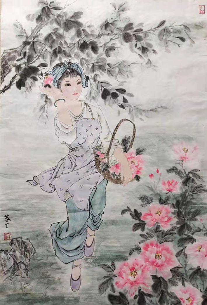 擅画 佛像、人物、花鸟,工笔仕女优佳、作品深受欢迎,日渐成为当代中国画坛备受推崇的后起之秀。