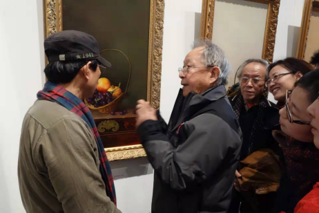在天津美术馆展览时,恩师张文新对画作进行点评