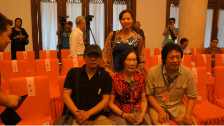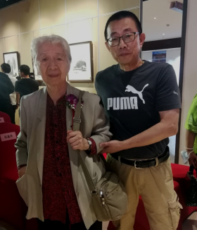 在北京政协礼堂,中国未来油画院建院展上与廖静文合影