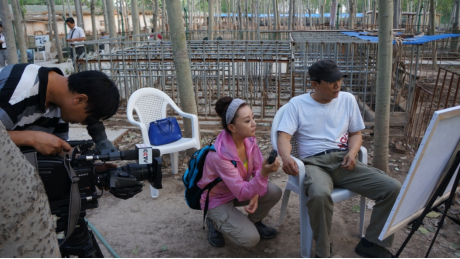 与中央工艺美术学院院长、中国文联终身成就美术家、中国美协副主席常沙娜合影