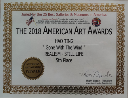 2018年参加美国国际艺术奖,作品获本届大赛第五名