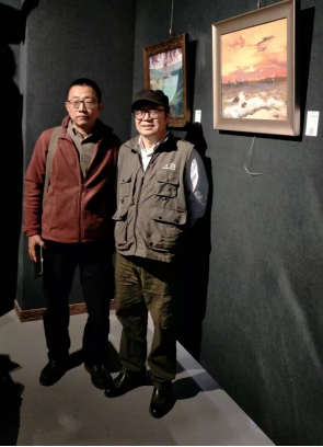 北京印象街艺术中心总经理,收藏家,企业家党越国收藏郝亭老油画作品并合影
