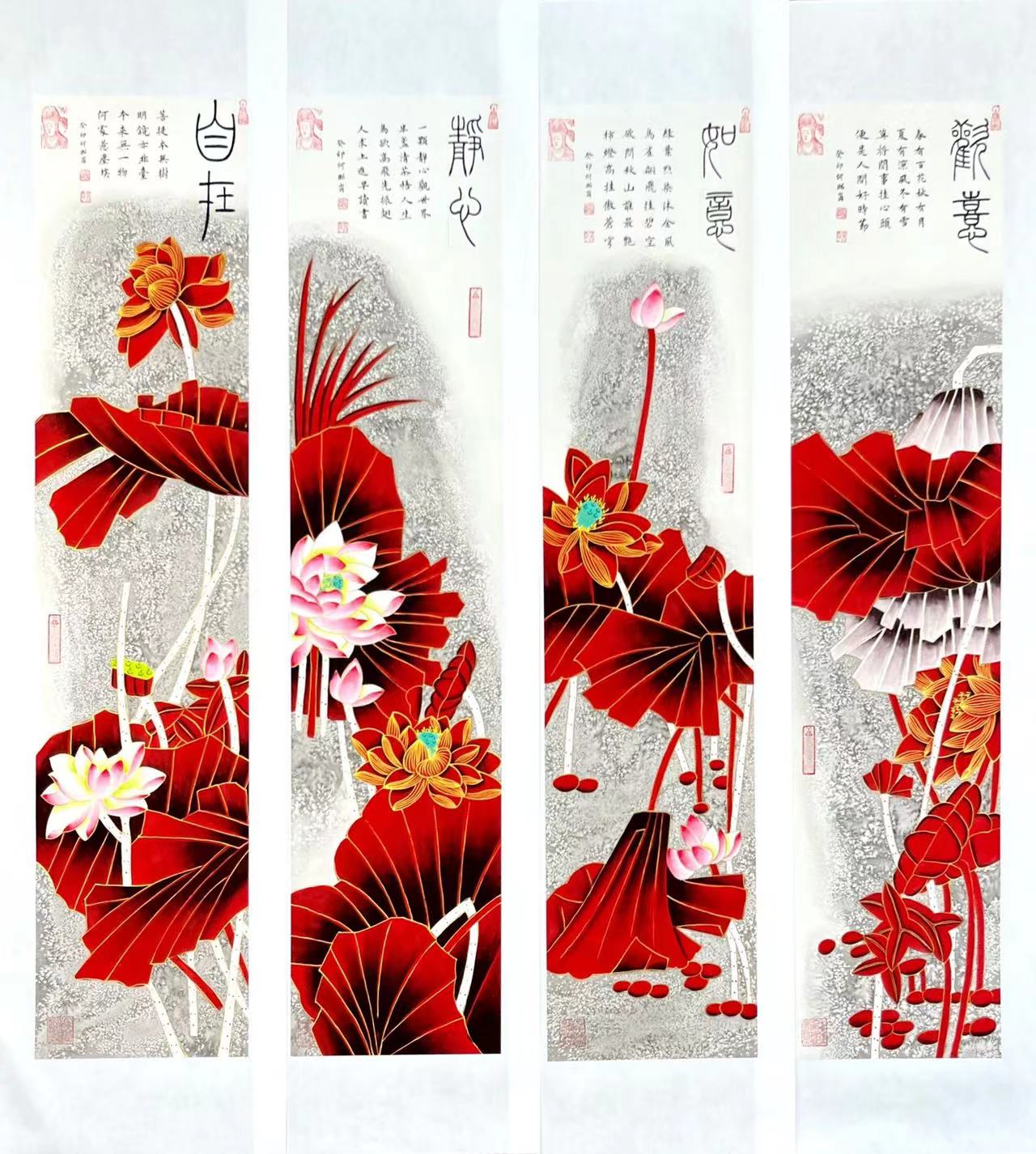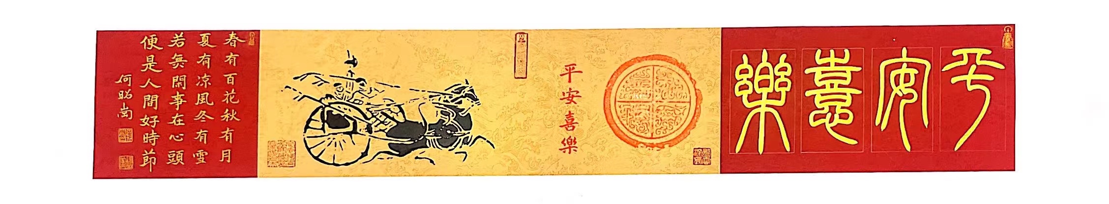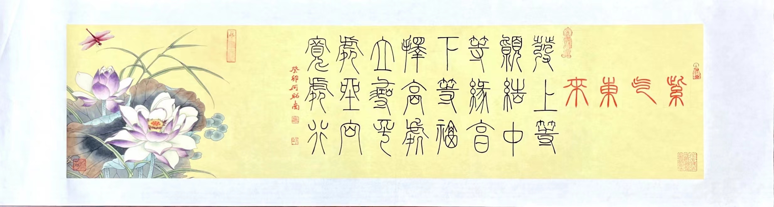 何昭岗先生作为一名守正扩新的名家,敢于在书画艺术领域大胆创新;将拼接艺术、拓染技法运用到自己的作品当中,在中国书坛引起一阵学习热潮,成为中国书坛新文艺群体的方向标,受到无数书家的追捧,代表作有《爱莲说》、《观雨听禅》、《欢喜如意》、《静心》。