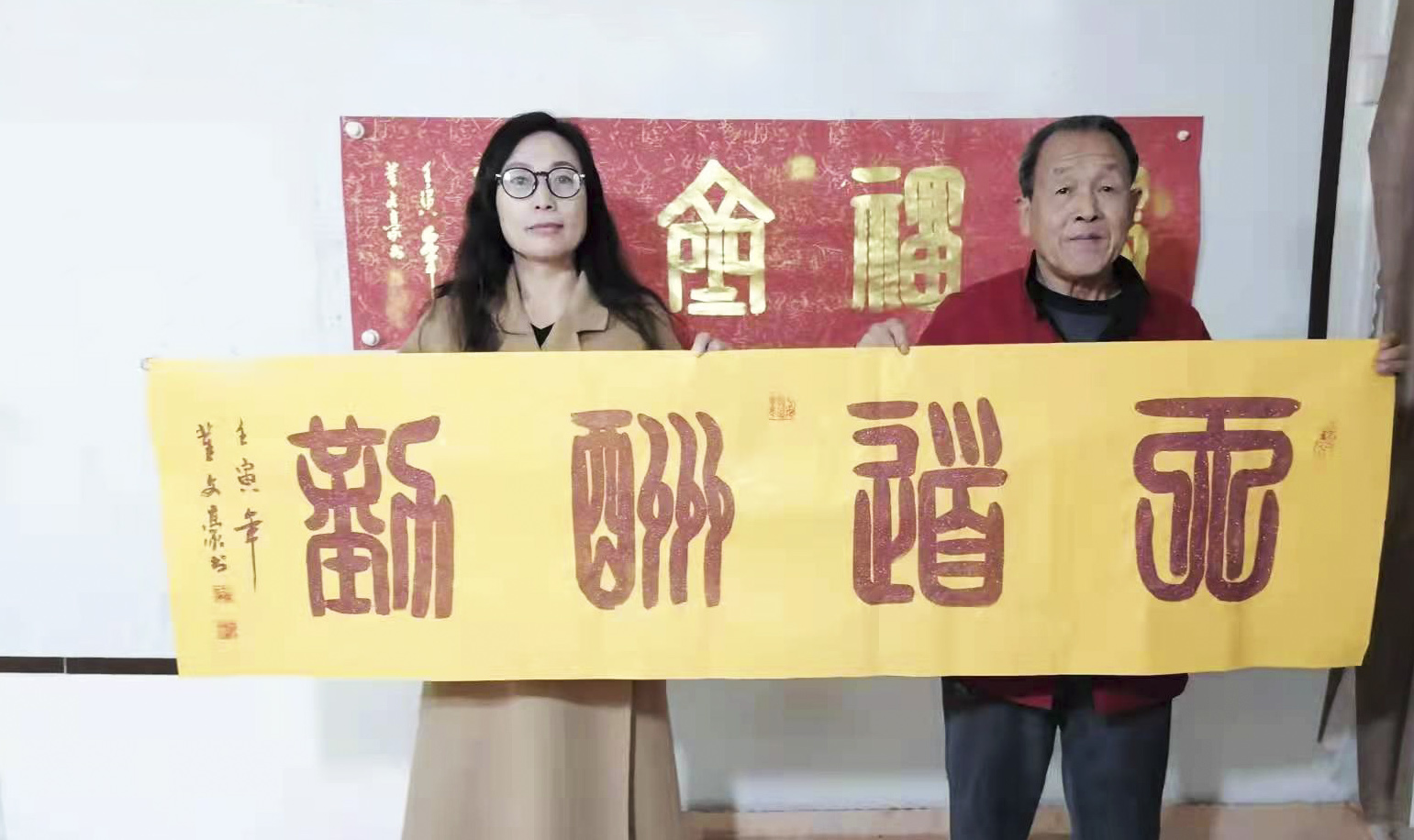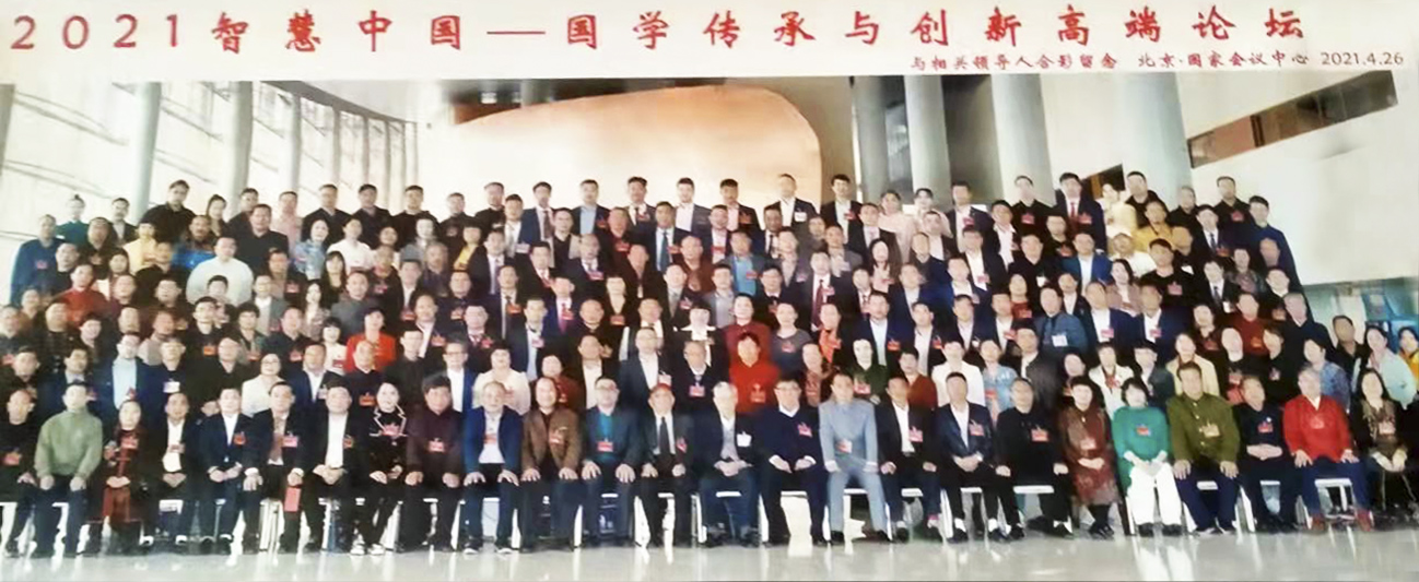 2021年智慧中国-国学传承与创新高端论坛收藏360cm*145cm《沁园春.雪》并合影留念。
