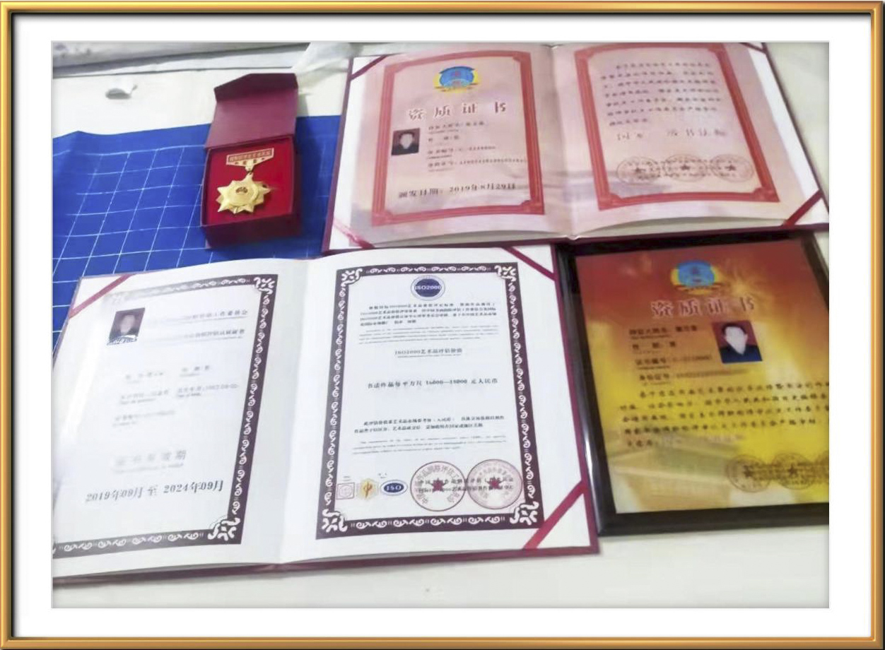 荣获中国当代书法名家奖章、奖牌收藏证书。
