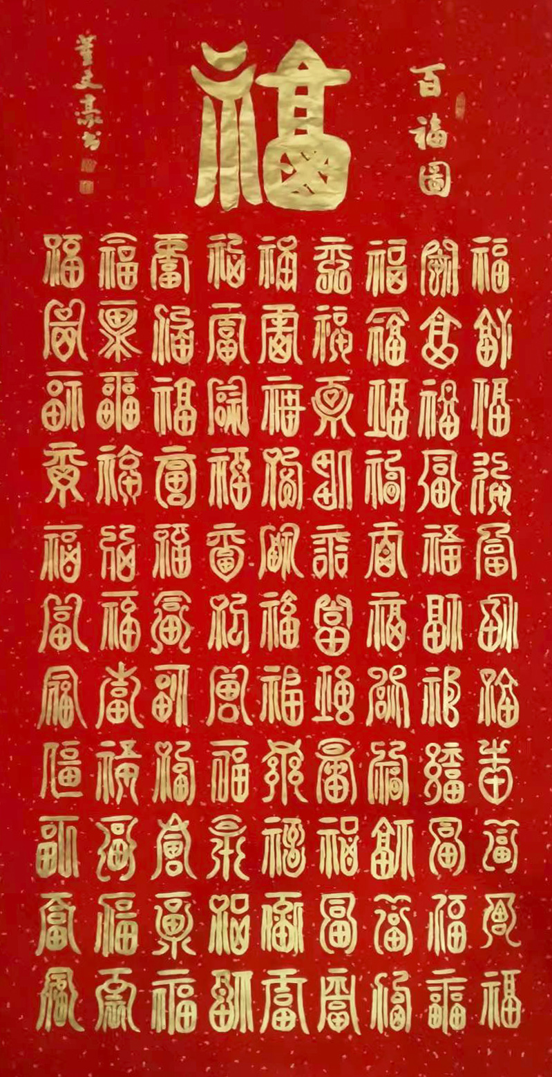 2018年9月,五台山品牌文化峰会,作品《定风波》《陋室铭》《诫子书》《望岳》《满江红》《博雅达观》《福无边乐长寿》》《百福图》被国内知名收藏家收藏。