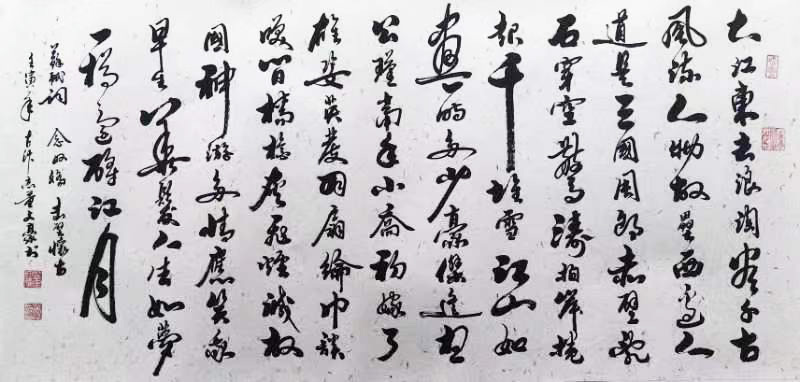 2021年作品《兰亭集序》《短歌行》《将进酒》《清平乐·六盘山》《满江红》入展建党100周年全国书法展(北京西城)。