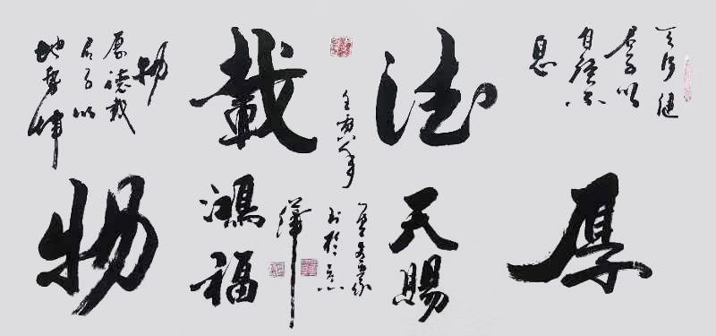 2023年9月23日作品《宁静致远立大志 海纳百川和为贵 天道酬勤家业旺 厚德载物福绵长》被亚组委选为国礼作品,赠送给为国争光的体育健儿们。