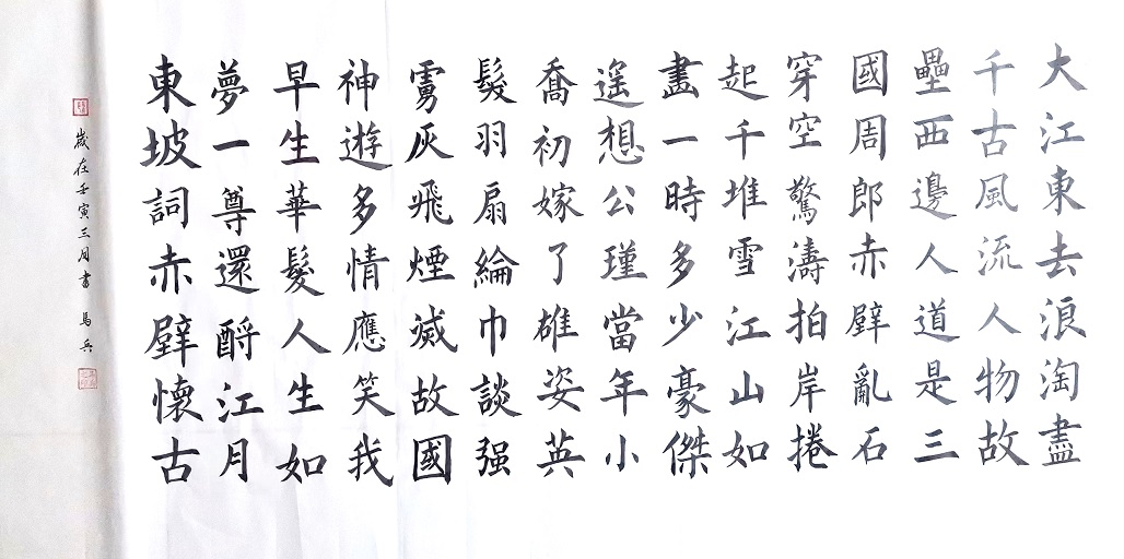 楷书以欧阳询,颜真卿为基础。欧体的骨架结合颜体的血筋骨肉。这自身 对于书法的领悟已形成自身的风格,隶书于曹全碑,张迁碑为基础,结体方正。