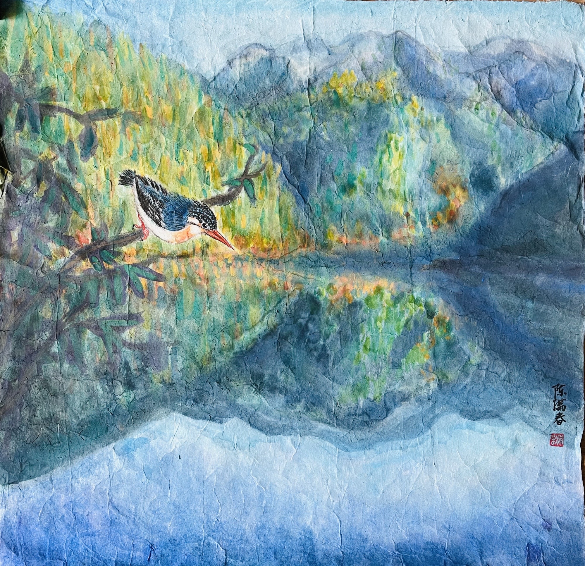 2020年 为应邀出席助力2021中国书画春晚海选创作彩墨作品《禅语》北京