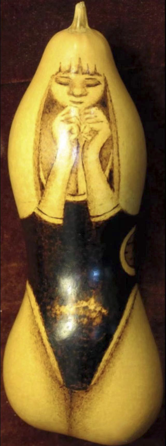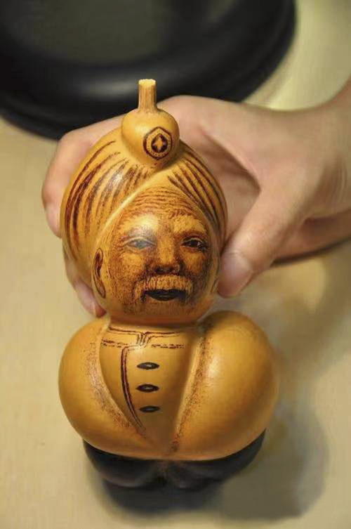“从事火绘葫芦的人都知道,火绘的技艺可追溯到先秦时期,两汉时期比较鼎盛。这门技艺曾经也是宫廷艺术,因为开始的时候不是烫在葫芦上,是烫在木板、扇子、家具上。从明末清初才正式烫在葫芦上。因为没有很详尽的文字资料,所以这些都是大家口口相传留下来的。”