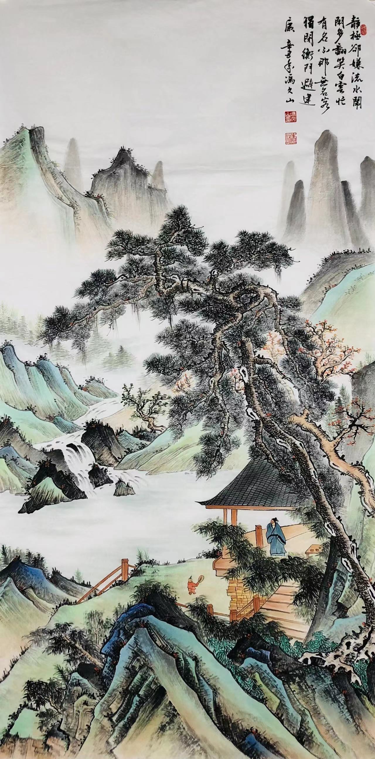 冯文山先生在国画领域的造帜也很非凡,常游览名山大川创作写生,开阔视野,启迪灵感。他坚持面向生活,坚持写实,坚持水墨本体语言的探索和研究,以速写入画,强调书意用线,形成了生活气息浓厚、造型平实自然、用线灵动飘逸、墨色淋漓透明的风格。