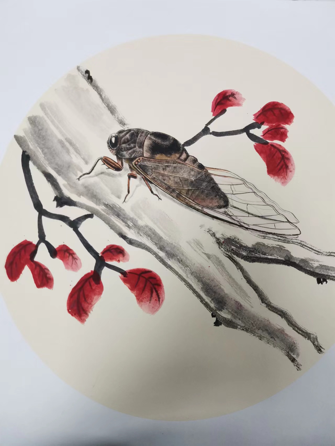 李乃家先生擅长绘画工笔蝉,长达几十年的钻研和创作使他在这一创作领域极具造诣。李老先生的蝉又一个突出特点“气韵生动”逼真而不呆板,所指的是笔下之作表现出的“生命的节奏”或“有节奏的生命”这一视觉形象。一幅画中各形式要素间有机联系,给人形成了“一气贯通”,“浑然天成”的感觉。