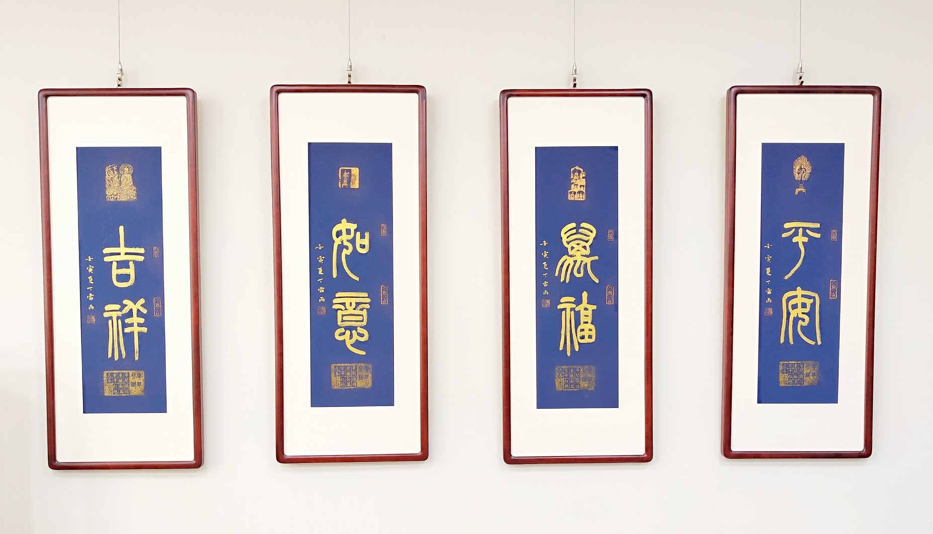 篆书作品四件:平安,如意,万福,吉祥,被福州千年古寺西禅寺收藏
