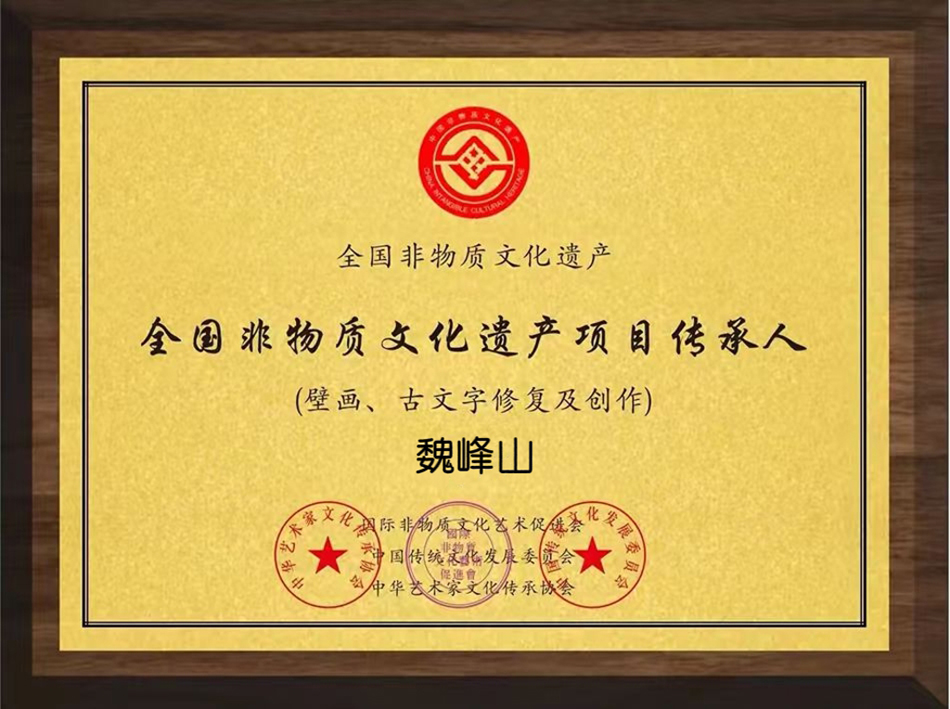 2004魏峰山作为敦煌莫高窟壁画修复专家,十多年从事我国古壁画以及古文字修复工作,是我国壁画、古文字修复被评为非遗传承人