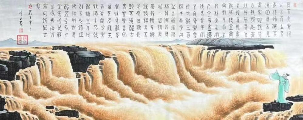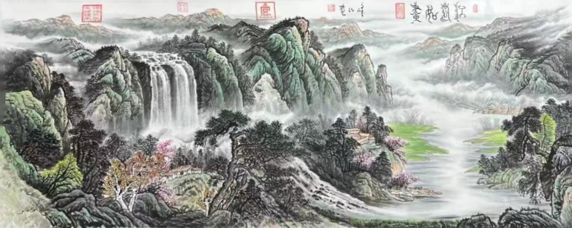 2023年《忆江南》作品,如诗如画,气势磅礴,被英国大都会博物馆珍藏,成为东西方艺术交流的桥梁