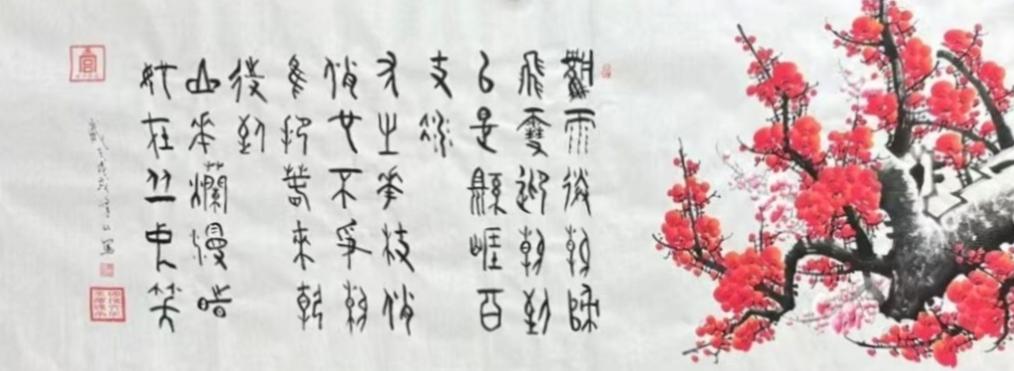 2018年《卜算子咏梅》甲骨文作品在全国第九届“羲之杯”全国书画家邀请赛评选中,经评委专家评审荣获金奖,并被荣宝斋买断收藏