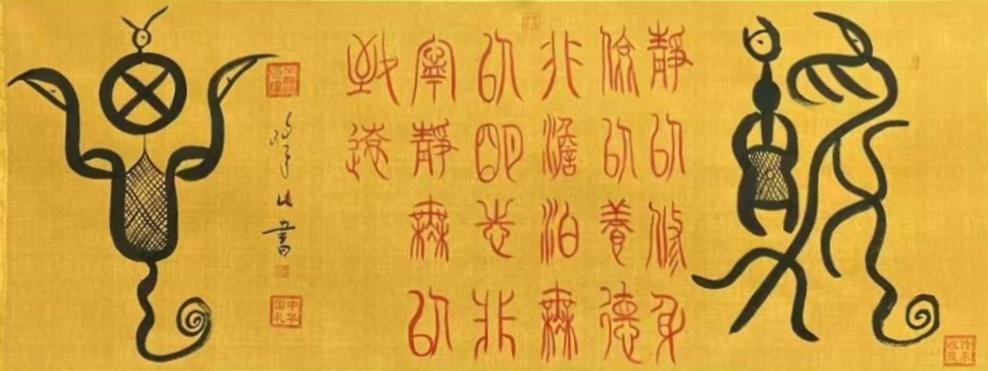 2014年8月代表作《家和万事兴》鸟虫篆荣获第三届 “盛世杯”全国书画名家艺术大赛金奖并被故宫博物院馆藏展览