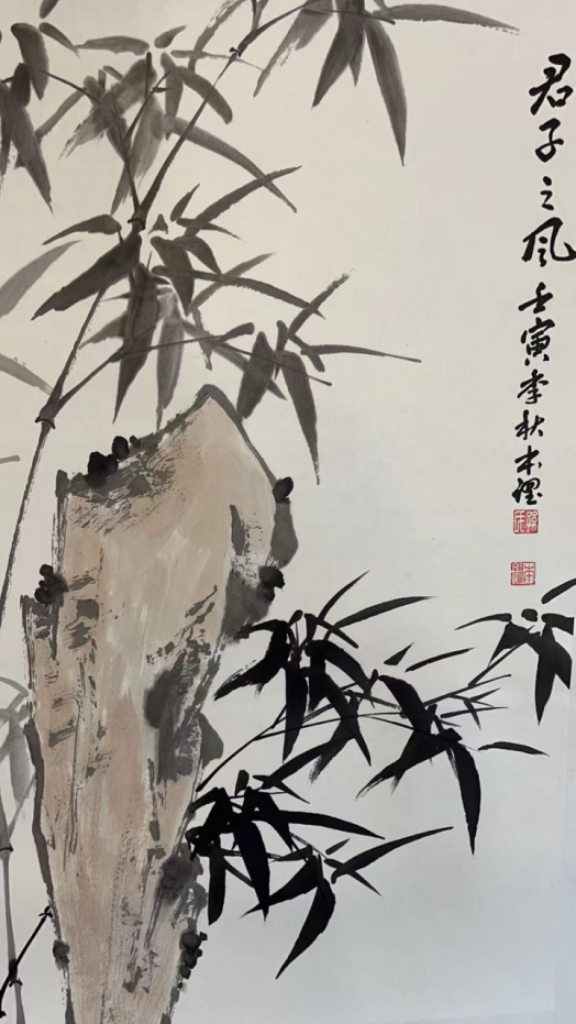 墨竹技法得已充分发挥,写竹之人需持刻苦不辍之德和深厚国学素养才可,可谓"半世兰,一世竹"矣。德厚始知竹如君子之性,才华洋溢方能笔墨淋漓表达竹之纯正之气韵。专访时得知,孙本跃正是品德画风都具此种君子尚德气概之画家。