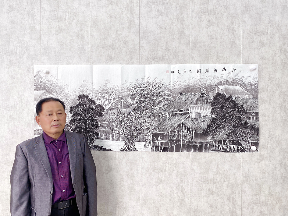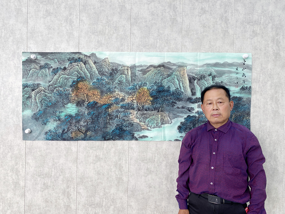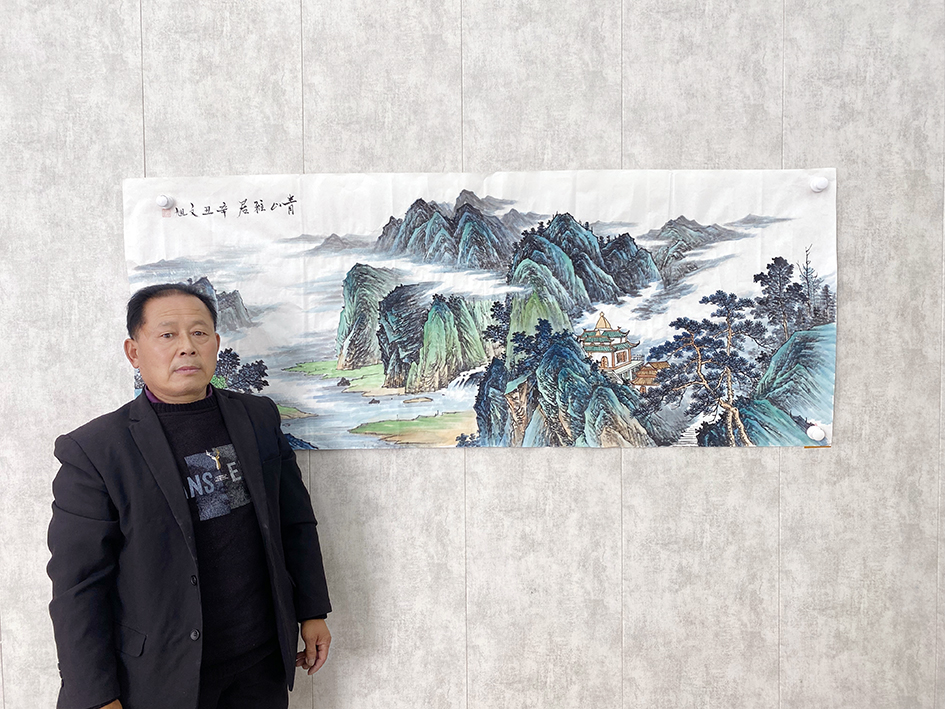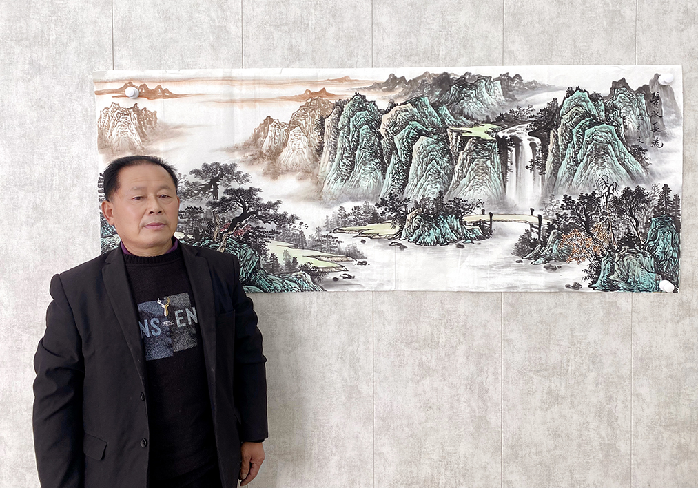 张文旭从8岁开始学习画画,对于绘画的热情让他从小就和同龄的孩子不一样,其他小朋友出去玩的时候,他更愿意去观察身边的花草树木,从小打下坚实绘画基础的张文旭,最有特点的山水画意境辽阔,让人心生向往。