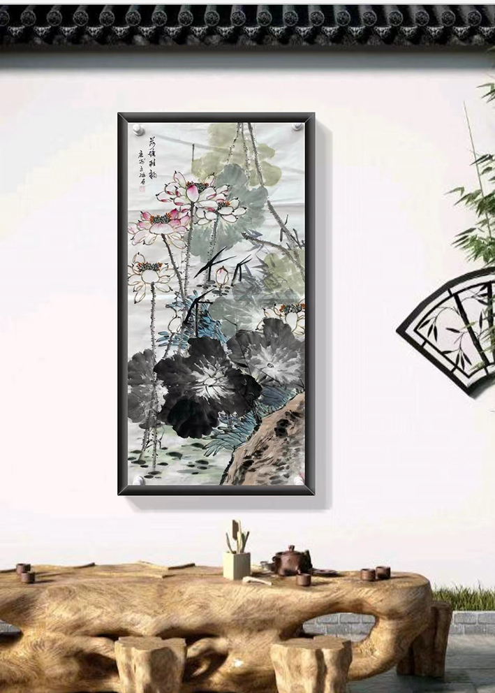 作品以传统的笔墨为厚基础,大胆用墨和用色,画风笔法魂韵酣畅,洒脱豪放、苍秀明静、精研雅丽,将现代生活的时代观念和大自然中所得到的悟性相结合,表现出具有自己现代独特的艺术形式。